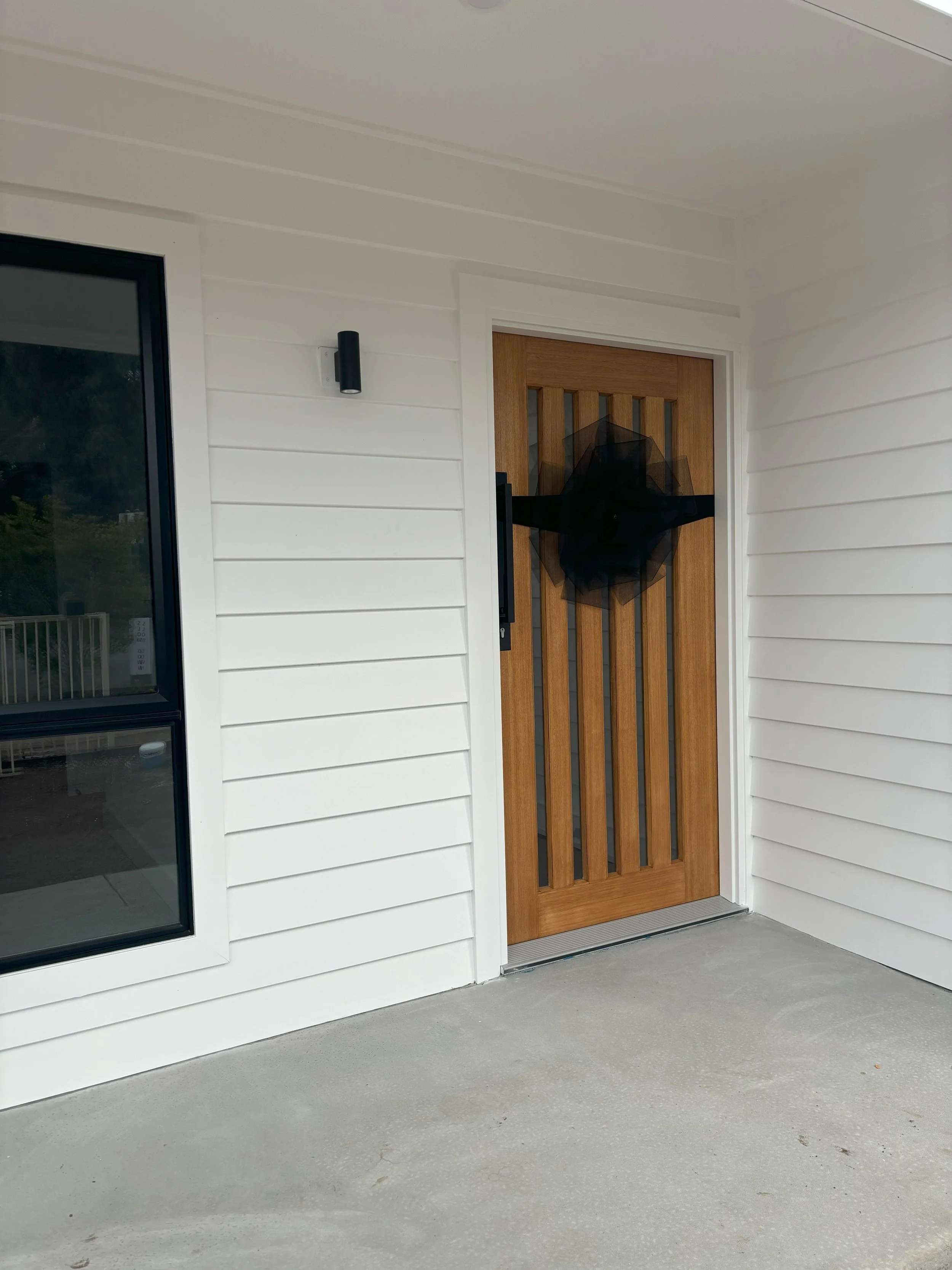 We recently completed a custom build at Park Street! This involved a fully cladded house, square set flush ceilings, raked outdoor ceiling and a large skylight above the kitchen.